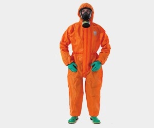 亮橙色,連體帶帽,松緊帽檐、腰部、袖口和褲管。外置型防化靴和防毒手套(另配)。獨(dú)特的超聲波焊接加黏膠條技術(shù)使接縫更加牢固密封。獨(dú)特的高科技面料可以高性能地防護(hù)200多種化學(xué)品和生物有害物。雙層拉鏈以及雙層門襟確保了衣服的密封性。雙層袖管確保了手套與衣服連接處的液密性。衣服纖維不脫落以保護(hù)犯罪現(xiàn)場。該款服裝是當(dāng)前世界上可重復(fù)使用的比較輕盈的防化防毒服。